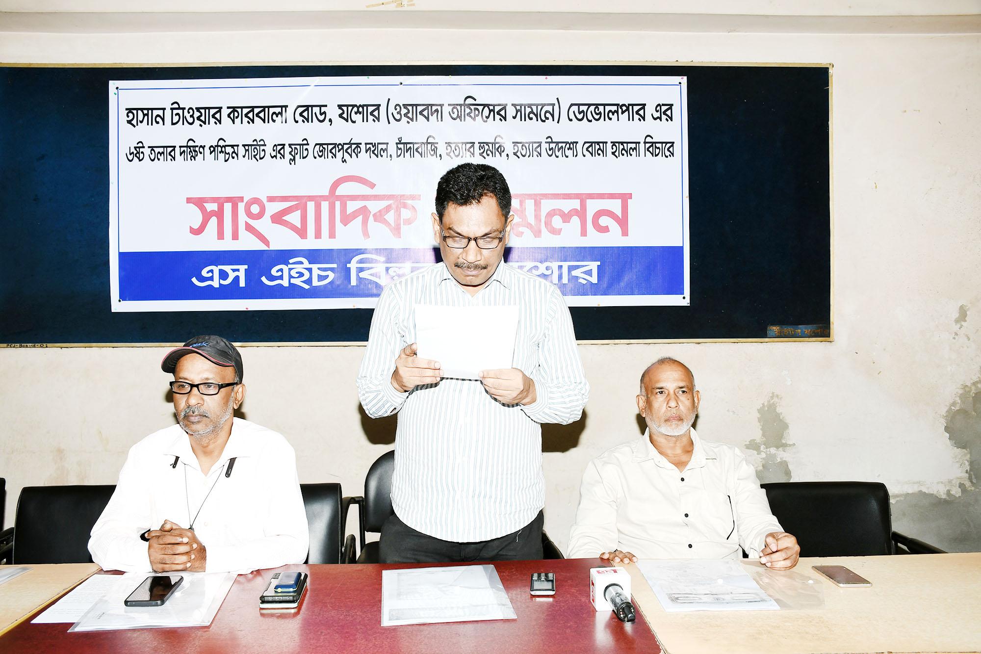 লিখিত বক্তব্যে রফিকুল ইসলাম হীরক জানান, যশোর শহরের কারবালা রোডে অবস্থিত ‘হাসান টাওয়ারে’র ষষ্ঠ তলার একটি ফ্ল্যাট জমির মালিক তাসলিমা হাসান, ফেনসি হাসান, তাদের ছেলে মেহেরাফসহ কয়েকজন জোরপূর্বক দখল করে নিয়েছেন।