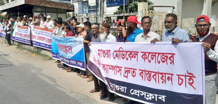 মাগুরা মেডিকেল কলেজ বন্ধের ষড়যন্ত্রের প্রতিবাদ ও দ্রুত স্থায়ী ক্যাম্পাস প্রতিষ্ঠার দাবিতে প্রতিবাদ সমাবেশ ও মানববন্ধন করেছে মাগুরার সর্বস্তরের জনগণ ও সাধারণ শিক্ষার্থীরা।