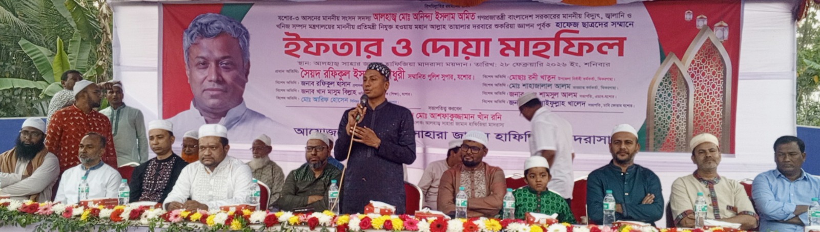 যশোর-৩ (সদর) আসনের নবনির্বাচিত সংসদ সদস্য অনিন্দ্য ইসলাম অমিত বিদ্যুৎ, জ্বালানি ও খনিজ সম্পদ মন্ত্রণালয়ের প্রতিমন্ত্রী হিসেবে দায়িত্বপ্রাপ্ত হওয়ায় ঝিকরগাছায় শুকরিয়া জ্ঞাপন ও হাফেজ শিক্ষার্থীদের সম্মানে ইফতার মাহফিল অনুষ্ঠিত হয়েছে। শনিবার আসর নামাজের পর সাহারা জামান হাফিজিয়া মাদরাসার উদ্যোগে এ অনুষ্ঠান আয়োজন করা হয়।