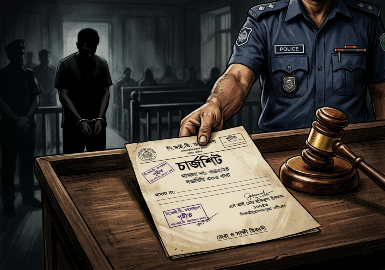 আসামিদের দেয়া তথ্য ও সাক্ষীদের বক্তব্যের ভিত্তিতে ঘটনার সঙ্গে জড়িত থাকার প্রমাণ পাওয়ায় চারজনকে অভিযুক্ত করে আদালতে চার্জশিট দাখিল করা হয়েছে। চার্জশিটে অভিযুক্ত চারজনকেই আটক দেখানো হয়েছে।