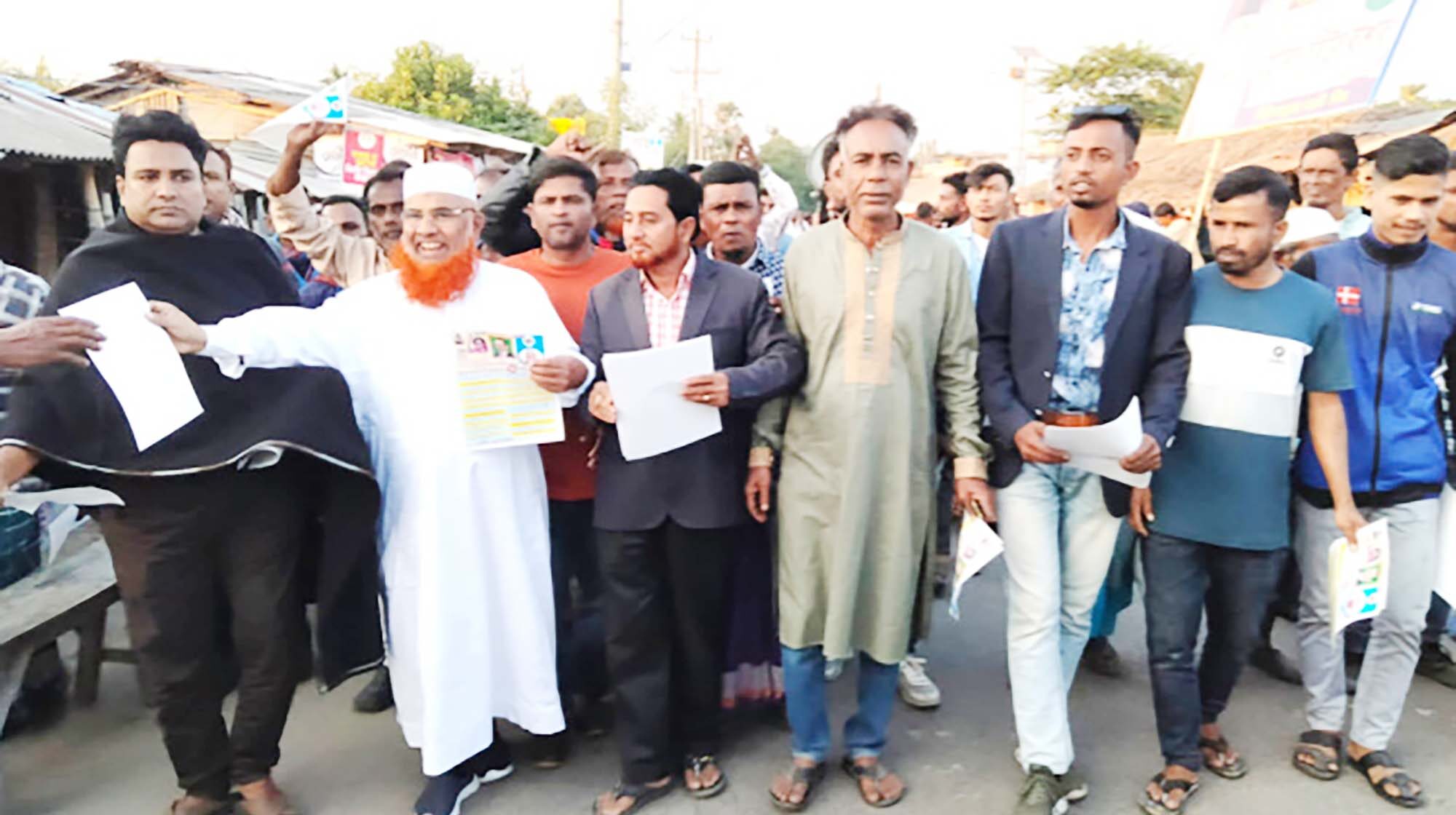 আশাশুনির তেঁতুলিয়া বাজারে কাজী আলাউদ্দীনের নির্বাচনী প্রচারণা