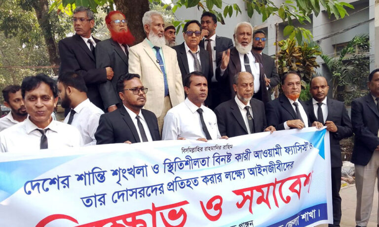 ঝিনাইদহে নিষিদ্ধঘোষিত সংগঠন আওয়ামী লীগের অপতৎপরতার বিরুদ্ধে বিক্ষোভ মিছিল ও সমাবেশ করেছে জেলা আইনজীবী ঐক্য পরিষদ।