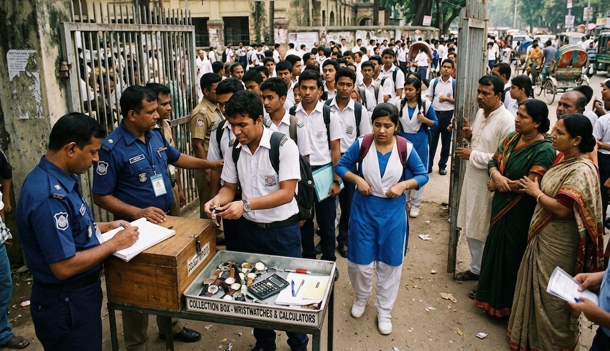চলমান এসএসসি ও সমমান পরীক্ষায় পরীক্ষার্থীদের হলে প্রবেশের সময় কাটাযুক্ত ঘড়ি ও ক্যালকুলেটর ব্যবহারের বিষয়ে শিক্ষা বোর্ডের প্রজ্ঞাপন থাকলেও মাঠ পর্যায়ে তা বাস্তবায়নে সমন্বয়হীনতা দেখা দিয়েছে। কেন্দ্রীয় নির্দেশনা ও কেন্দ্রগুলোর কার্যক্রমের মধ্যে এই অমিলকে ঘিরে তৈরি হয়েছে পরীক্ষার্থী ও অভিবাবকদের মধ্যে বিভ্রান্তি তৈরি হয়েছে। অভিভাবকদের অভিযোগ প্রজ্ঞাপন জারি হলেও তা বাস্তবায়ন হচ্ছেনা।