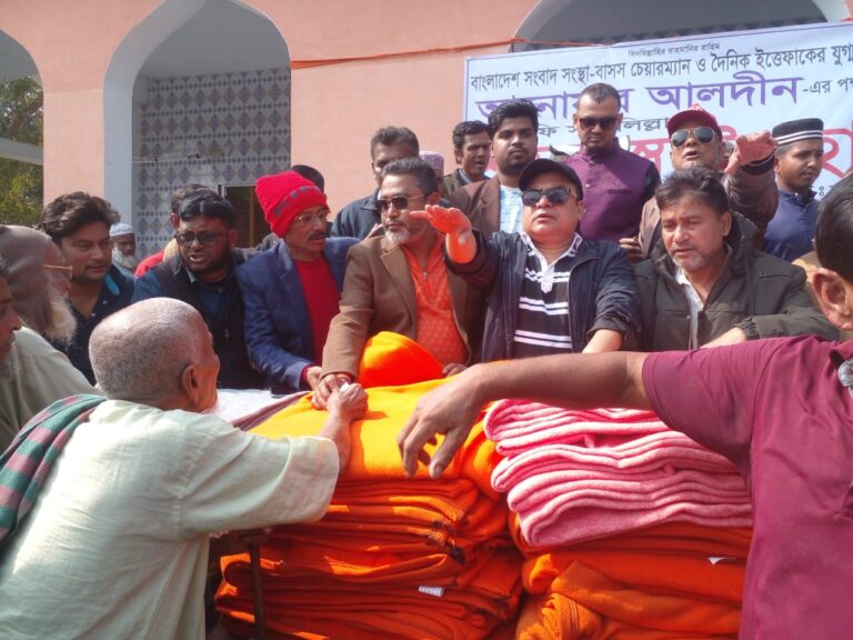 কপিলমুনিতে শীতার্তদের শীতবস্ত্র দিলেন বাসস চেয়ারম্যান