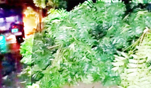 মঙ্গলবার রাত ৮টা থেকে প্রায় এক ঘণ্টা ধরে প্রবল ঝড়ো হাওয়া ও বৃষ্টি হয়। এতে বিভিন্ন সড়কে গাছ ভেঙে পড়ে সাময়িকভাবে যান চলাচল বন্ধ হয়ে যায়।