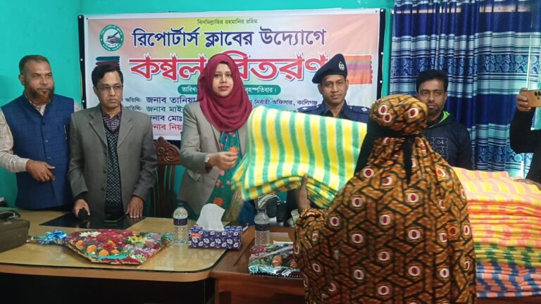অসহায় শীতার্ত মানুষের মুখে হাসি ফুটানোর লক্ষ্যে কম্বল বিতরণ করেছে সাতক্ষীরার কালিগঞ্জ রিপোর্টার্স ক্লাব।
