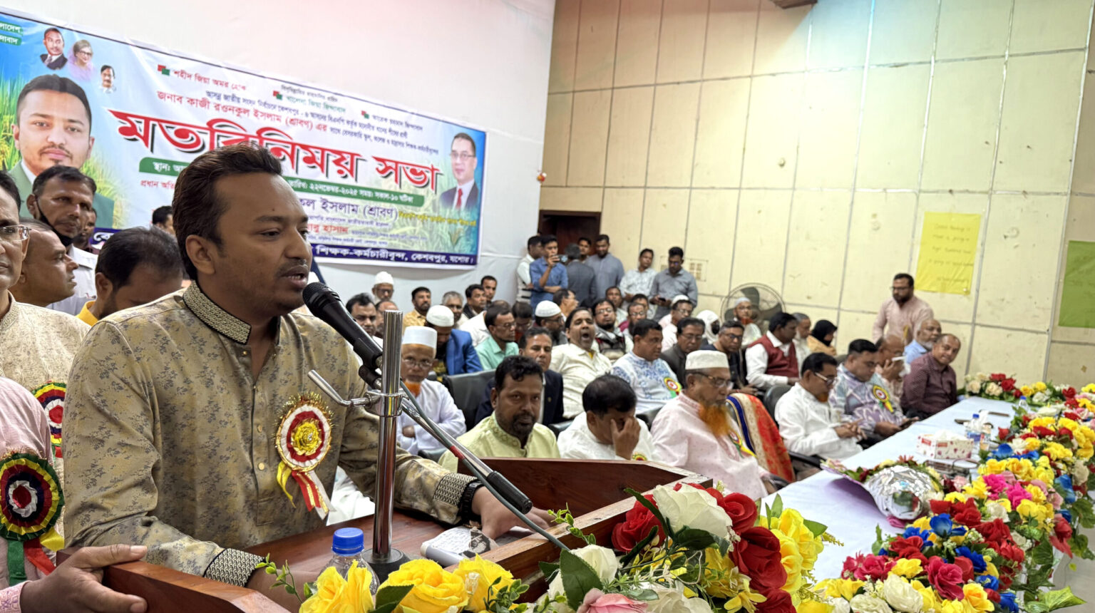 উপজেলা সম্মিলিত শিক্ষক-কর্মচারী জোটের আহ্বায়ক সহকারী অধ্যাপক আবু হাসানের সভাপতিত্বে মতবিনিময় সভায় প্রধান অতিথির বক্তব্য দেন যশোর-৬ (কেশবপুর) আসনে ধানের শীষ প্রতীকের সংসদ সদস্য প্রার্থী কেন্দ্রীয় বিএনপির নির্বাহী কমিটির সদস্য ও কেন্দ্রীয় ছাত্রদলের সাবেক সভাপতি কাজী রওনকুল ইসলাম শ্রাবণ। সংগঠনের সদস্য সচিব আব্দুল গফুরের সঞ্চালনায় অনুষ্ঠানে বিশেষ অতিথির বক্তব্য দেন পৌর বিএনপির সভাপতি আব্দুস সামাদ বিশ্বাস, উপজেলা বিএনপির সাবেক আহ্বায়ক মশিয়ার রহমান, উপজেলা বিএনপির সহসভাপতি আলাউদ্দীন আলা, সাংগঠনিক স¤পাদক হুমায়ূন কবীর সুমন ও পৌর বিএনপির সহসভাপতি ফারুকে আজম। অন্যান্যের মধ্যে বক্তব্য দেন, শিক্ষক মতিয়ার রহমান, আব্দুস সালাম, কামরুজ্জামান লাল্টু, আহসান হাবিব, মিজানুর রহমান, শহিদুল ইসলাম, আব্দুল আজিজ, রবিউল আলম, মনিরুজ্জামান প্রমুখ।