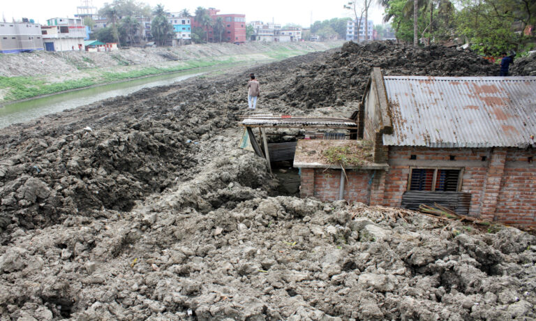 ক্ষতিগ্রস্ত রুনু বেগম বলেন, নদী খনন হোক, সেটা আমরা চাই। কিন্তু সেই মাটি আমাদের বাড়ির ওপর ফেলে দেওয়া হয়েছে।