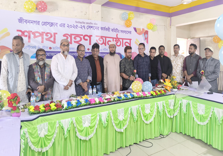 চুয়াডাঙ্গার জীবননগর প্রেসক্লাবের ২০২৫-২৭ সেশনের নবনির্বাচিত কার্যনির্বাহী কমিটির শপথ গ্রহণ অনুষ্ঠিত হয়েছে।