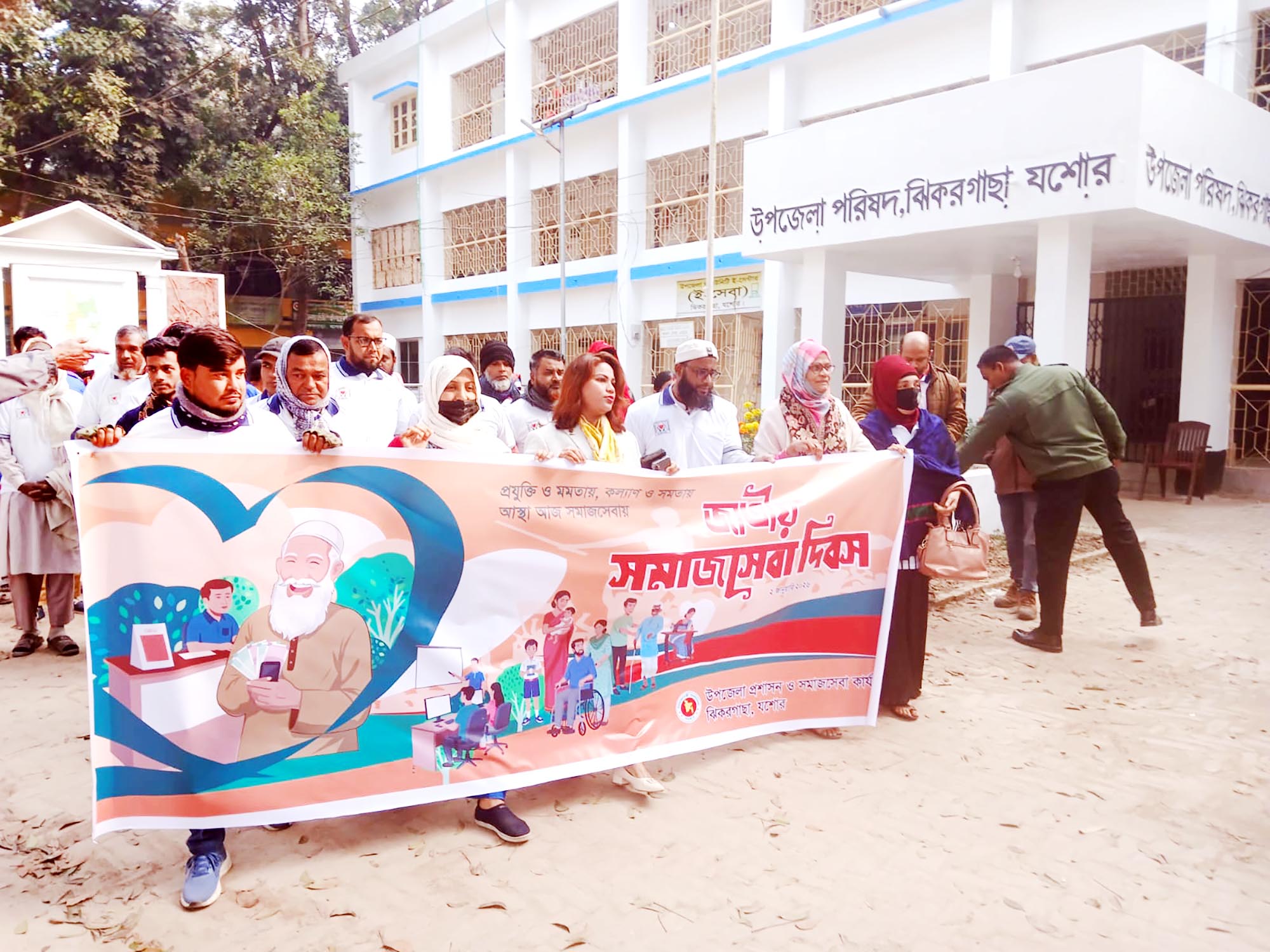ঝিকরগাছা উপজেলা প্রশাসন ও উপজেলা সমাজসেবা কার্যালয়ের যৌথ আয়োজনে শনিবার সকাল ১০টায় উপজেলা পরিষদ চত্বর থেকে এক বর্ণাঢ্য র্যালি বের করা হয়। র্যালিটি শহরের প্রধান প্রধান সড়ক প্রদক্ষিণ শেষে উপজেলা পরিষদে এসে শেষ হয়।
