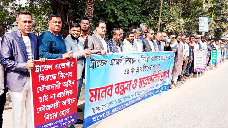 বাংলাদেশ ট্রাভেল এজেন্সি (নিবন্ধন ও নিয়ন্ত্রণ) আইন সংশোধনের প্রস্তাবিত নতুন খসড়া অধ্যাদেশ-২০২৫ বাতিলের দাবি জানিয়েছে অ্যাসোসিয়েশন অব ট্রাভেল এজেন্টস অব বাংলাদেশের (আটাব) যশোর-খুলনা’র সদস্য কল্যাণ ঐক্য জোট।