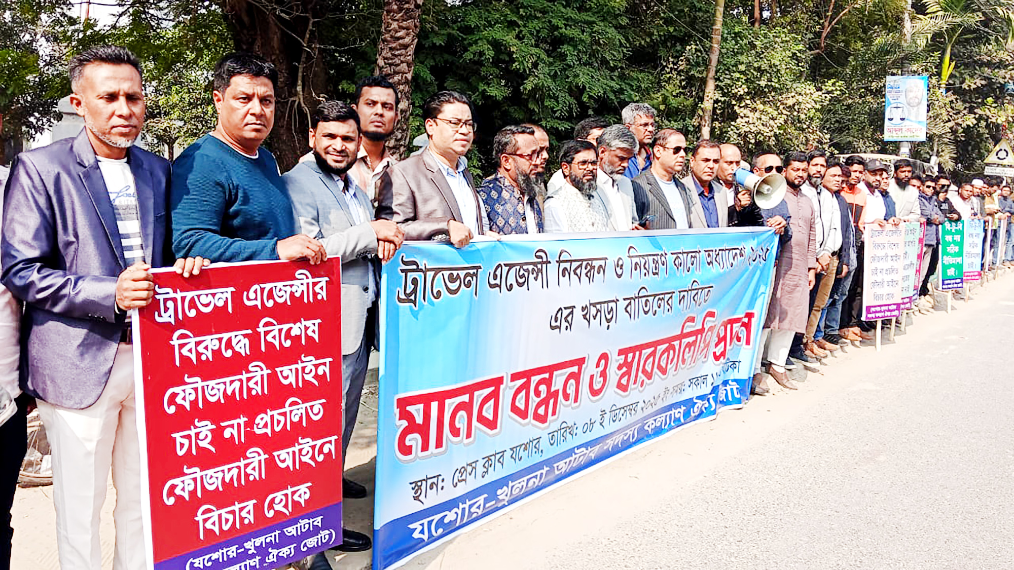 সোমবার যশোর প্রেস ক্লাবের সামনে আয়োজিত এক মানববন্ধন থেকে এই দাবি জানান আটাব নেতারা। এ সময় আটাব নেতৃবৃন্দ বলেন, বেসামরিক বিমান পরিবহন ও পর্যটন মন্ত্রণালয় আইন-২০১৩ এবং ২০২১’র সংশোধনী আইনে পরিবর্তন করে নতুন যে অধ্যাদেশের খসড়া তৈরি করা হয়েছে তা বাস্তবায়িত হলে দেশের প্রায় পাঁচ হাজার ট্রাভেল এজেন্সি বন্ধ হয়ে যেতে পারে। এতে মালিক, কর্মকর্তা এবং কর্মচারীরা কর্মহীন হয়ে পড়বেন, যা পুরো খাত এবং জাতীয় অর্থনীতিতে বিরূপ প্রভাব ফেলবে।