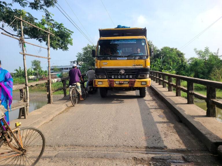 সরেজমিনে গেলে দেখা যায় ব্রিজের নিচের কয়েকটি পিলারে ফাটল ধরেছে। উপরের রেলিংয়ে কোন প্লাস্টার নেই মরিচাযুক্ত লোহার রড বেরিয়ে রয়েছে। একেবারেই জরাজীর্ণ অবস্থা। এমনকি ব্রিজের উপরের সোলিং উঠে গেছে। সেখানে পাতানো রয়েছে ছোট এক টুকরো লোহার পাত। যে কারণে যে কোন সময় ব্রিজ ভেঙে পড়ে বড় ধরনের দুর্ঘটনার আশংকা করছে স্থানীয় সচেতন মহল।