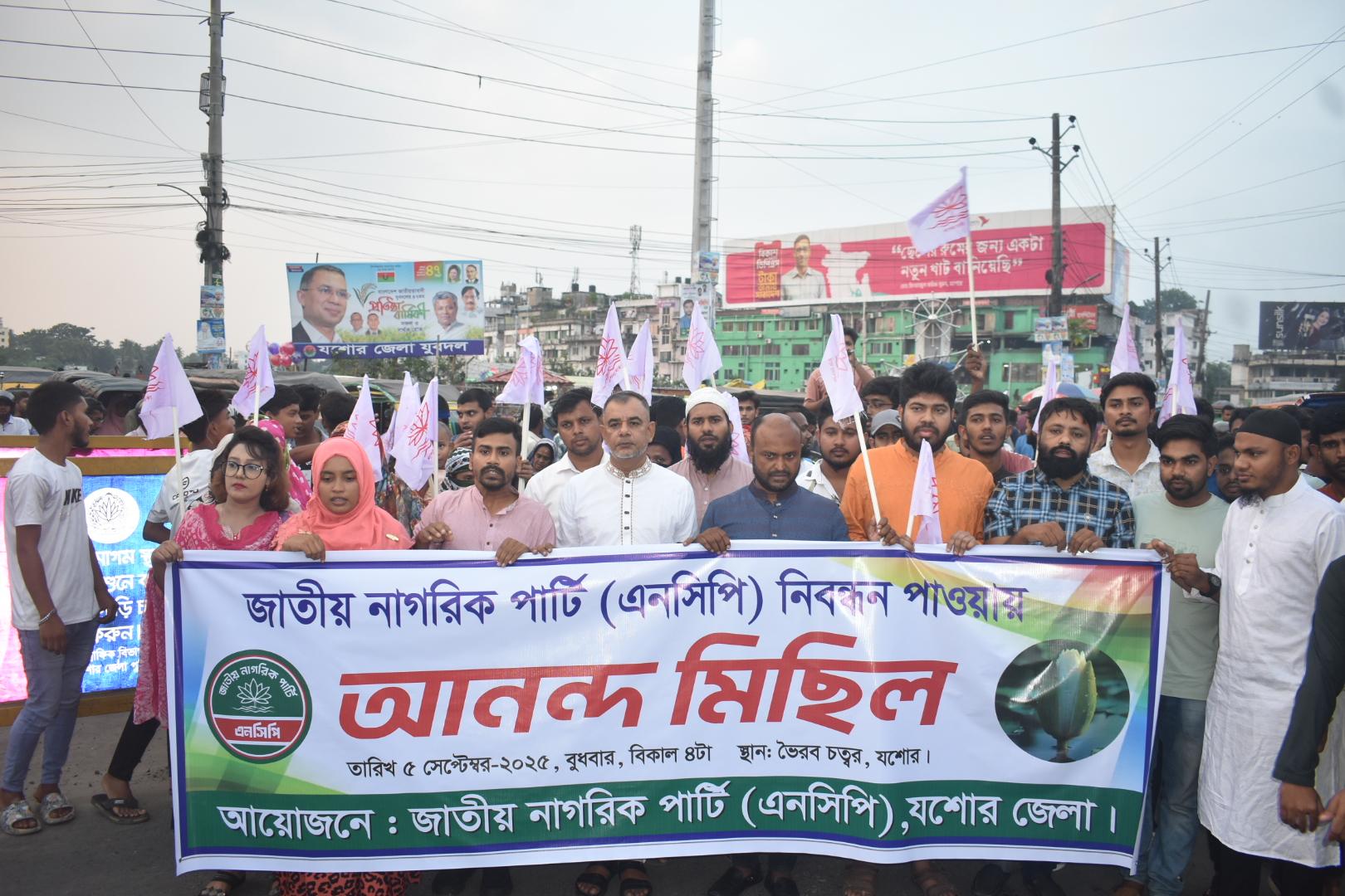 দলীয় প্রতীক হিসেবে শাপলা কলি ও নির্বাচন কমিশনের (ইসি) নিবন্ধন পাওয়ায় শহরের দড়াটানা ভৈরব চত্বর থেকে শুরু হওয়া এক আনন্দ মিছিল শেষে এসব কথা বলেন মো. নুরুজ্জামান। এ সময় অন্যান্যের মধ্যে উপস্থিত ছিলেন যুগ্ম সমন্বয়কারী সাজিদ সরওয়ার, সালমা আক্তার আশা, সিনিয়র যুগ্ম সদস্য সচিব সাইদ সান, যুগ্ম আহবায়ক রুহিত, যুগ্ম সদস্য সচিব নাদিম হাসান, খালিদ হোসেন, সংগঠক পল্লব, রিয়াজঅভয়নগর উপজেলা প্রধান সমন্বয়কারী শাহজাহান কবীর, যশোর জেলা যুবশক্তির আহবায়ক ইমদাদ হোসাইন, সদর উপজেলা সংগঠক ফরহাদ হোসেনসহ আরো অনেকে।