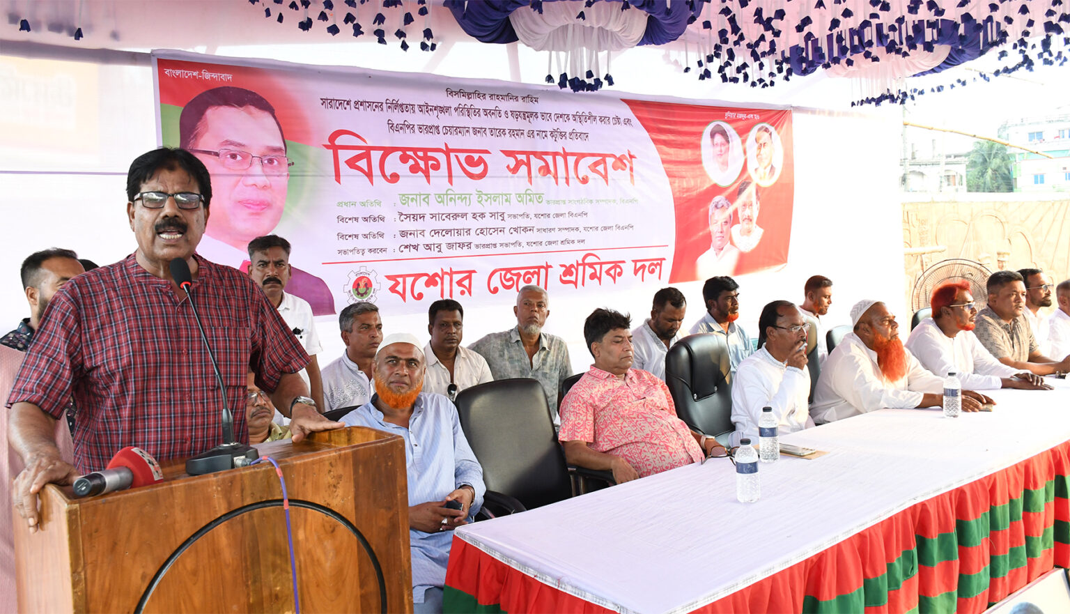 সারাদেশে প্রশাসনের নির্লিপ্ততায় আইনশৃঙ্খলা অবনতি ও ষড়যন্ত্রমূলকভাবে দেশকে অস্থিতিশীল করার চেষ্টা এবং বিএনপির ভারপ্রাপ্ত চেয়ারম্যান তারেক রহমানকে নিয়ে কটুক্তির প্রতিবাদে সোমবার জেলা শ্রমিক দলের আয়োজনে বিক্ষোভ সমাবেশ অনুষ্ঠিত হয়েছে।