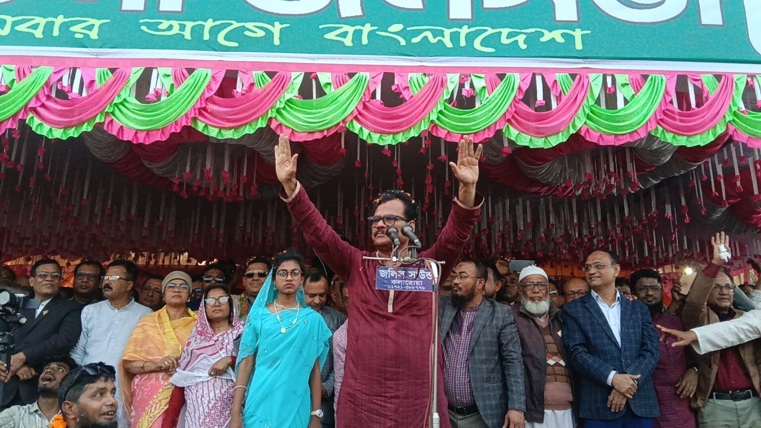 জনসভায় কলারোয়া উপজেলা বিএনপি’র সিনিয়র সহ-সভাপতি আব্দুর রশিদ চেয়ারম্যানের সভাপতিত্বে প্রধান অতিথি হিসেবে বক্তব্য রাখেন, সাতক্ষীরা-১ (তালা-কলারোয়া) সংসদীয় আসন থেকে ধানের শীষ প্রতীকের এমপি প্রার্থী ও দু’ বারের জনপ্রিয় সাবেক এমপি হাবিবুল ইসলাম হাবিব।