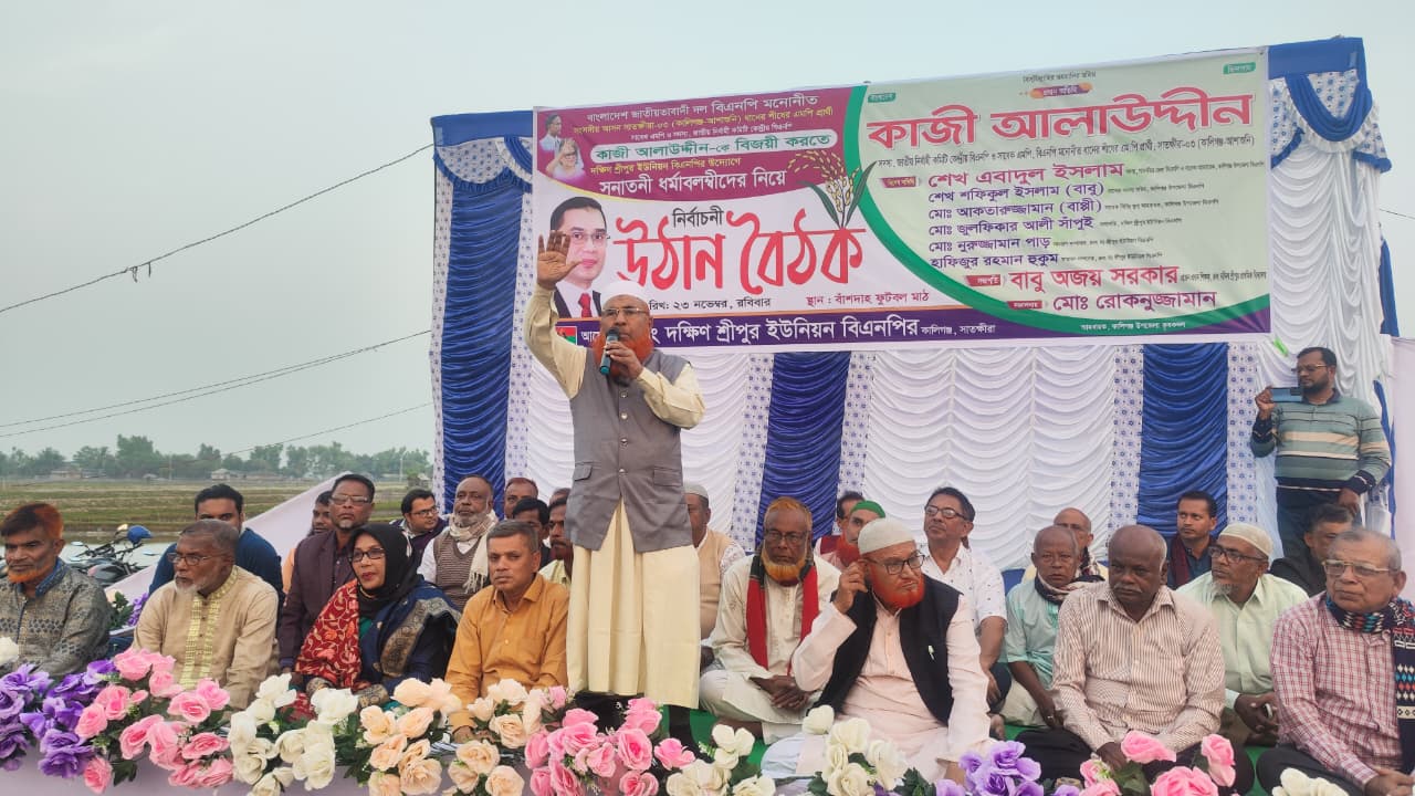 রোববার বিকেলে কালিগঞ্জের দক্ষিণ শ্রীপুরের বাঁশদাহ ফুটবল মাঠে অনুষ্ঠিত সভায় দক্ষিণ শ্রীপুর প্রাথমিক বিদ্যালয়ের সাবেক প্রধান শিক্ষকের সভাপতিত্বে ও কালিগঞ্জ উপজেলা কৃষকদলের আহ্বায়ক মো. রোকনুজ্জামানের সঞ্চালনায় প্রধান অতিথি হিসেবে বক্তব্য রাখেন বিএনপির কেন্দ্রীয় কমিটির সদস্য ও সাতক্ষীরা-৩ আসনে ধানের শীষের মনোনীত প্রার্থী কাজী আলাউদ্দীন।