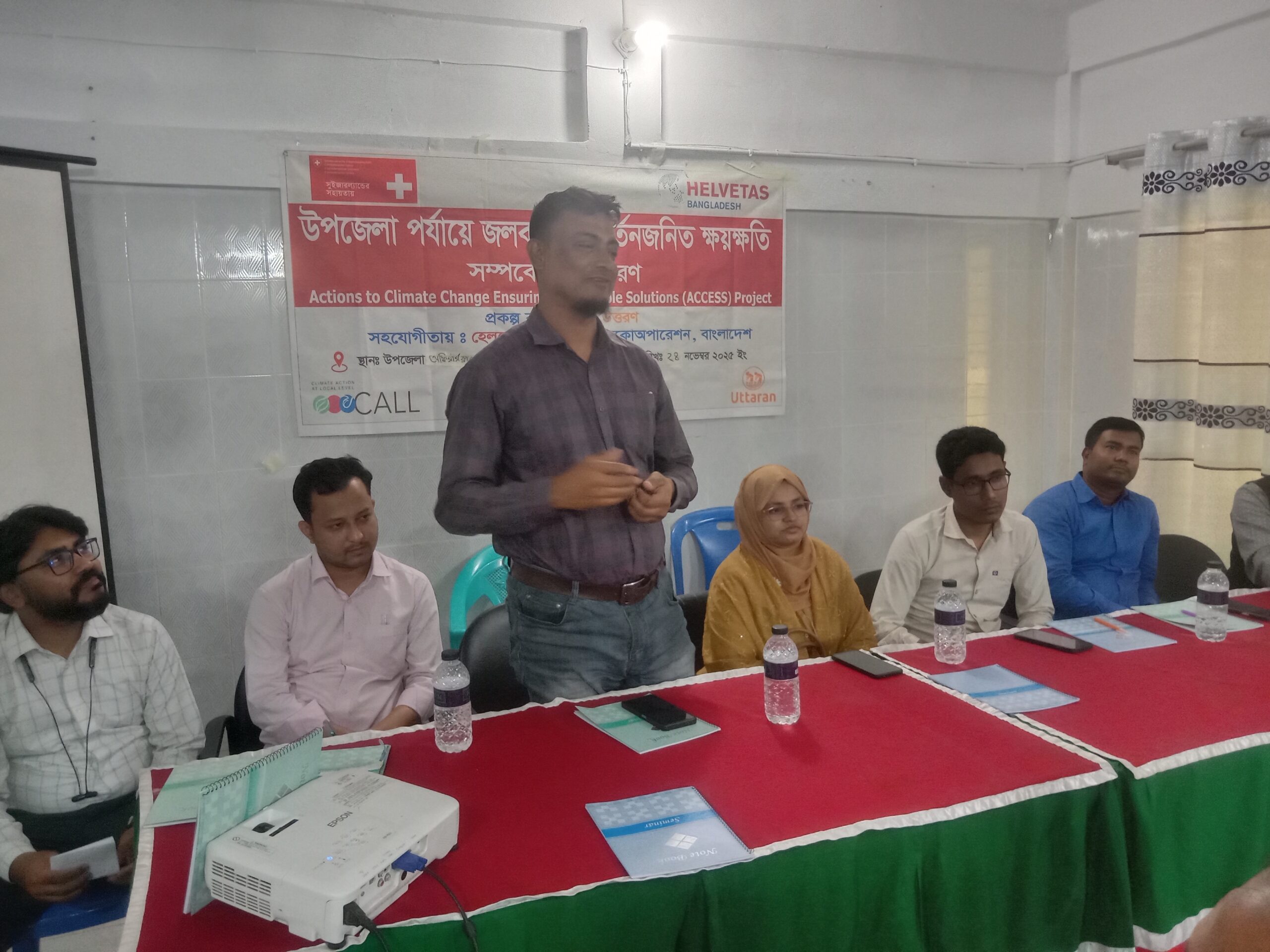 উপজেলা বিআরডিবি কর্মকর্তা ওয়াহিদ মুরাদ হোসেনের সভাপতিত্বে ও উত্তরণ কো-অর্ডিনেটর ফয়সাল মন্ডলের সঞ্চালনায় সভায় উপজেলার বিভিন্ন দপ্তরের সরকারি কর্মকর্তাদের মধ্যে বক্তব্য রাখেন হুমায়ুন কবির, হাসিবুল ইসলাম, আব্দুল্লাহ আল মামুন, রেশমা আক্তার, জিএম জাকারিয়া, শাহাজান আলী, ইউনিয়ন পরিষদ সচিব আরিফ বিল্লাহ, সহকারী সচিব তৈয়েবুর রহমান, এনজিও এ্যাওসেড প্রতিনিধি মানিক বসু, কৃষক দীপক বর্মন ও উত্তরণের কমিউনিটি ডেভেলপমেন্ট কর্মকর্তা মনিরুল ইসলাম।