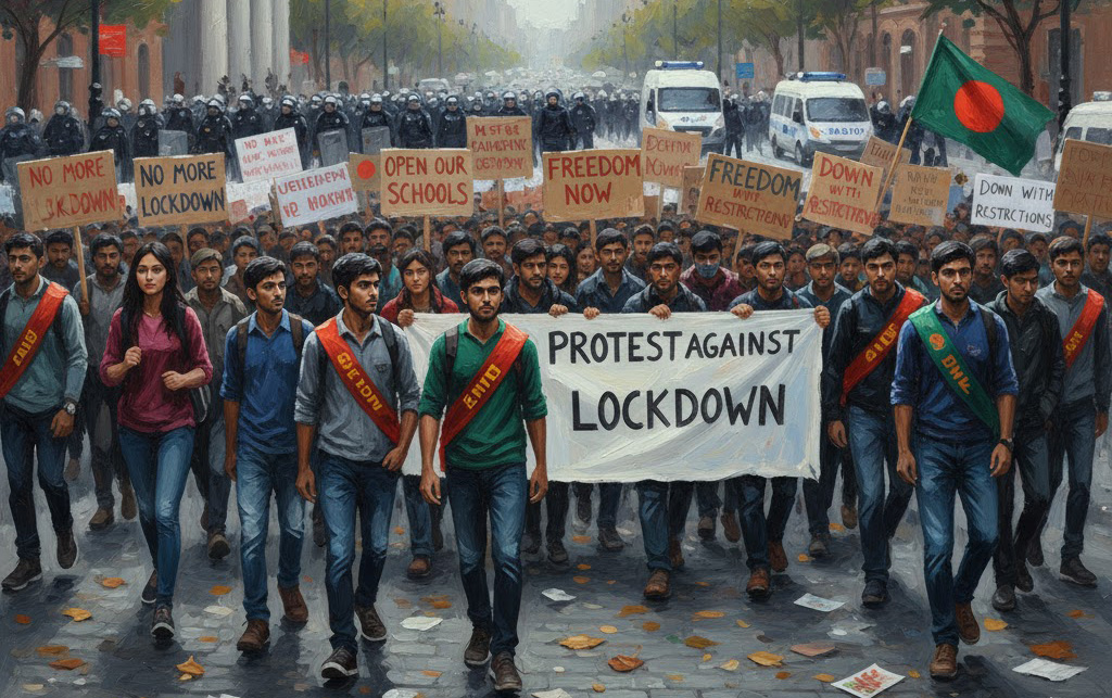 পাইকগাছায় লকডাউনের প্রতিবাদে ছাত্র জনতা ও বিএনপির মিছিল