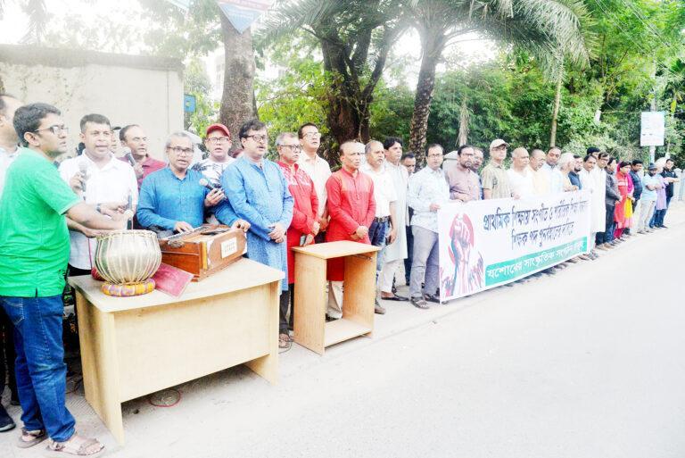 প্রাথমিক শিক্ষায় সংগীত ও শারীরিক শিক্ষা সহকারী পদ পুনর্বহাল দাবিতে যশোরে মানববন্ধন