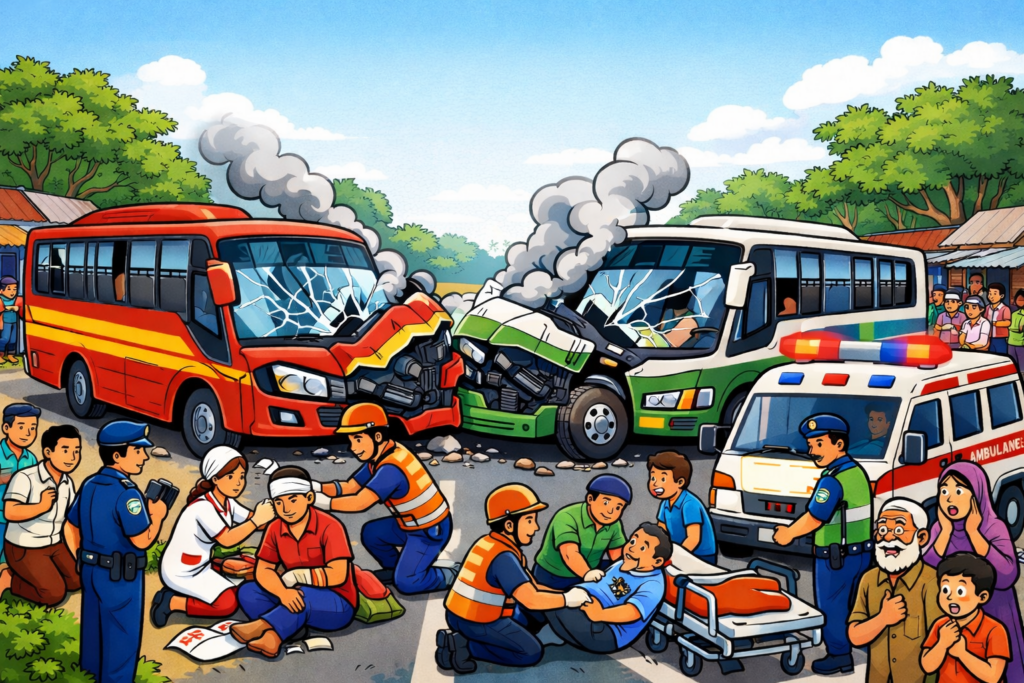 বাগেরহাটের ফকিরহাটে দুটি যাত্রীবাহী বাসের সাথে মূখোমূখি সংঘর্ষের ঘটনায় ব্যাংক কর্মকর্তা ও নারীসহ ১৫ জন আহত হয়েছেন। খুলনা-ঢাকা মহাড়কের ফকিরহাট বিশ্বরোড মোড় এলাকায় এ দুর্ঘটনা ঘটে।
