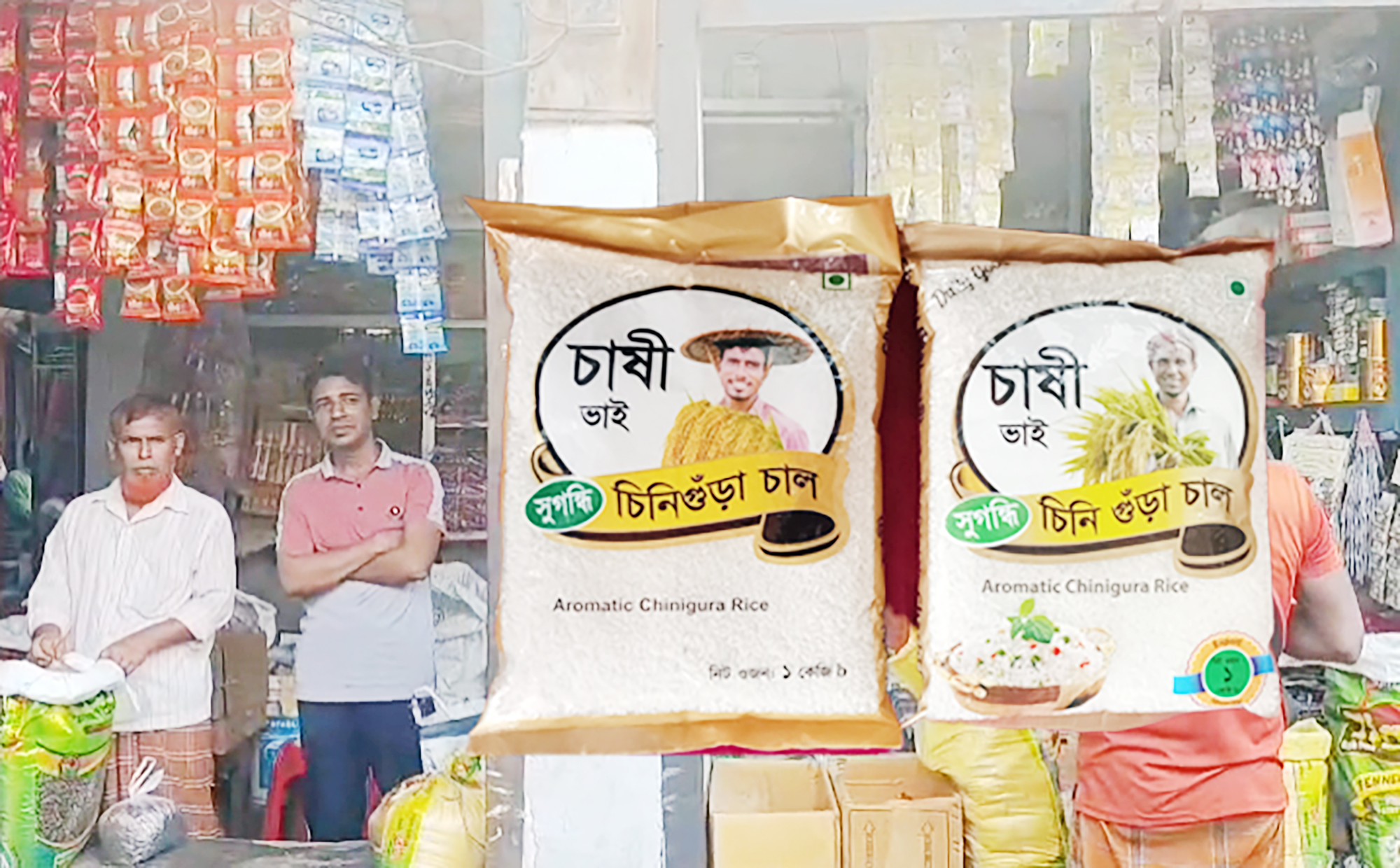 দোকানদার আরিফ হোসেন ‘চাঁষী ভাই’ সুগন্ধি চিনিগুঁড়া নামে একটি চালের প্যাকেট ধরিয়ে দেন। দাম রাখা হয় ১৭০ টাকা। ‘চাষী ভাই’ চালের প্যাকেটটি দেখতে হুবহু স্কয়ার কোম্পানির ‘চাষী’র মতো।’ দেখে বোঝার উপায় নেই।