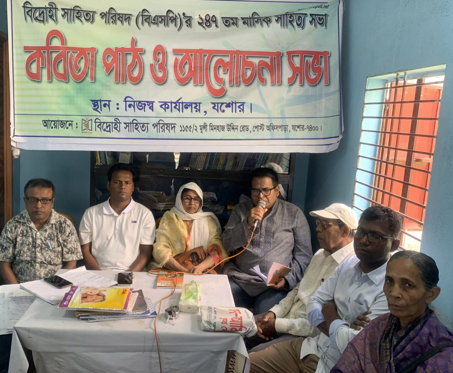 বিদ্রোহী সাহিত্য পরিষদ (বিএসপি) যশোরের উদ্যোগে ২৪৭ তম মাসিক সাহিত্য সভা শুক্রবার সকাল ১০টায় অনুষ্ঠিত হয়েছে। যশোর শহরের পোস্ট অফিসপাড়ার নিজস্ব কার্যালয়ে অনুষ্ঠিত এ অনুষ্ঠানে প্রধান অতিথি হিসেবে উপস্থিত ছিলেন কবি ও গবেষক শিমুল আজাদ।