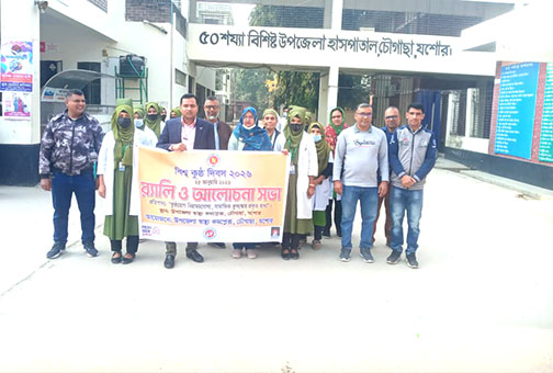 বিশ্ব কুষ্ঠ দিবস-২০২৬ উপলক্ষে যশোরের চৌগাছা উপজেলা স্বাস্থ্য কমপ্লেক্সের উদ্যোগে রোববার এক বর্ণাঢ্য র্যালি ও আলোচনা সভা অনুষ্ঠিত হয়েছে। এবারের প্রতিপাদ-“কুষ্ঠ রোগ নিরাময়যোগ্য, সামাজিক কুসংস্কারই প্রকৃত বাধা”-কে সামনে রেখে আয়োজিত এ কর্মসূচির মাধ্যমে কুষ্ঠ রোগ সম্পর্কে জনসচেতনতা বৃদ্ধির আহ্বান জানানো হয়।