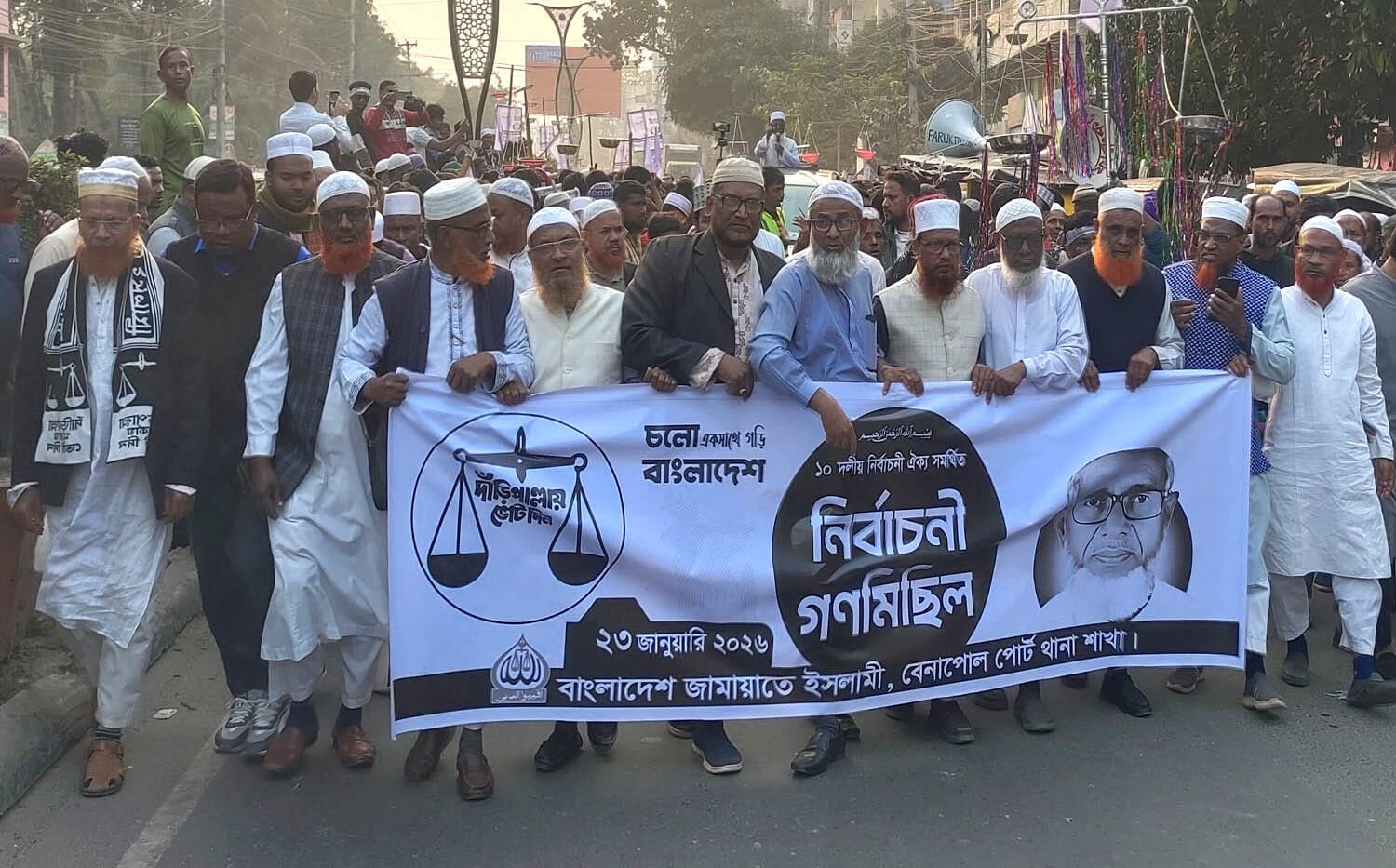 শুক্রবার আসরের নামাজের পর মিছিলটি বেনাপোল বাজার কেন্দ্রীয় জামে মসজিদ এলাকা থেকে শুরু হয়ে বন্দরনগরীর প্রধান সড়ক প্রদক্ষিণ করে কেন্দ্রীয় জামে মসজিদের সামনে এসে সংক্ষিপ্ত পথসভার মাধ্যমে শেষ হয়। মিছিলে হাজারো নেতাকর্মী ও সাধারণ মানুষের স্বতঃস্ফূর্ত অংশগ্রহণ এলাকাজুড়ে ব্যাপক উৎসাহ ও উদ্দীপনা সৃষ্টি করে।