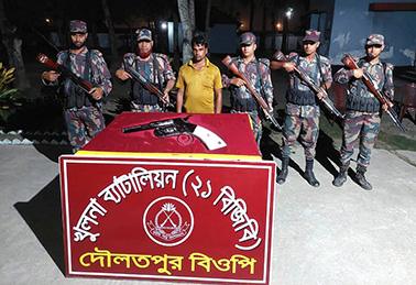 গোপন সংবাদের ভিত্তিতে মঙ্গলবার ভোর ৫টায় সীমান্ত পিলার ১৭/৯ এস হতে আনুমানিক ৫০০ গজ বাংলাদেশের অভ্যন্তরে দৌলতপুর উত্তরপাড়া নামক স্থানে অভিযান চালায় বিজিবির সদস্যরা। এ সময় আসামির ঘরের পামের ধানের গোলায় পলিথিন দিয়ে মোড়ানো অভিনব কায়দায় লুকানো পিস্তলটি উদ্ধার করা হয়।