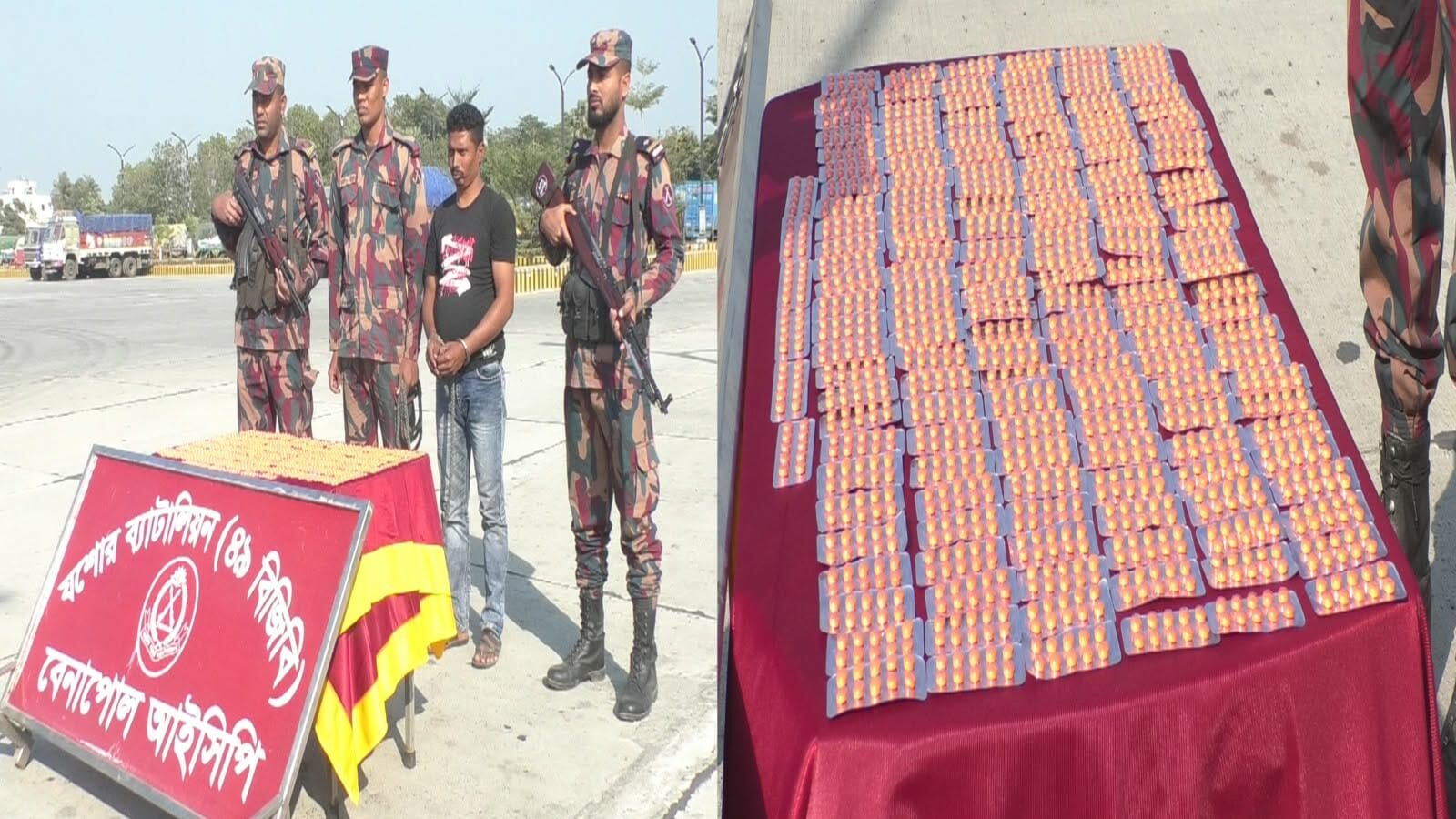৪৯ বিজিবির অধিনায়ক লে. কর্নেল সাইফুল্লাহ সিদ্দিকী জানান, গোপন সংবাদের ভিত্তিতে বিজিবি বন্দরের কার্গোভেহিকেল টার্মিনালে এক ভারতীয় ট্রাকে তল্লাশী করে চালকের সিটের নিচ থেকে এক হাজার ছয়শত পিস নেশা জাতীয় ট্যাবলেট উদ্ধার করে। আটক আসামি ও জব্দকৃত ট্যাবলেট বেনাপোল পোর্ট থানায় হস্তান্তর করা হয়েছে।