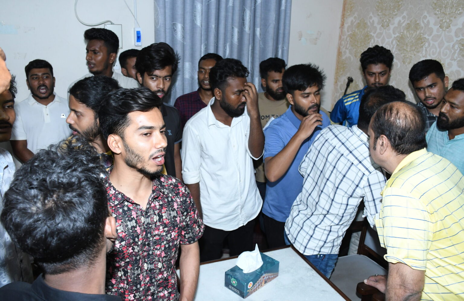 চেক প্রদানের আগে শহিদ ও আহতদের তালিকা প্রণয়নে অসঙ্গতির কথা তুলে ধরে বক্তব্য ও স্লোগান দেন বৈষম্য বিরোধী ছাত্র আন্দোলনের নেতারা। তাদের স্লোগানে হট্টগোল সৃষ্টি হয়। কোন বিবেচনায় শহিদ ও আহতদের তালিকায় নাম যোগ ও বিয়োগ হয়েছে, সেই বিষয়ে স্পষ্ট ব্যাখা দাবি করেন ছাত্ররা।