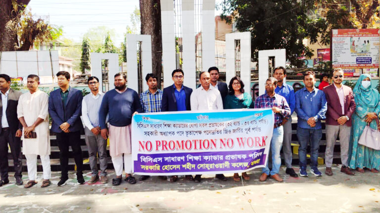 জানা যায়, বিসিএস সাধারণ শিক্ষা ক্যাডারের ৩২তম থেকে ৩৭তম ব্যাচের প্রভাষকরা দীর্ঘদিন ধরে সহকারী অধ্যাপক পদে ভূতাপেক্ষ পদোন্নতির ন্যায়সঙ্গত দাবি জানিয়ে আসছেন। তবে দীর্ঘ অপেক্ষার পরও জিও জারি না হওয়ায় হতাশা ও ক্ষোভ প্রকাশ করেন তারা। দাবি আদায় না হওয়া পর্যন্ত তারা দেশব্যাপী “ পদোন্নতি নাই, কোন কাজ নাই কর্মসূচি’ পালন করছেন।