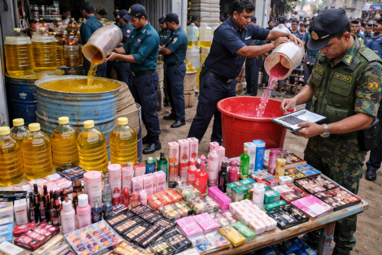 মণিরামপুরে ভেজাল প্রসাধনী তৈরি ও তেল মজুদ : দুই প্রতিষ্ঠানকে জরিমানা