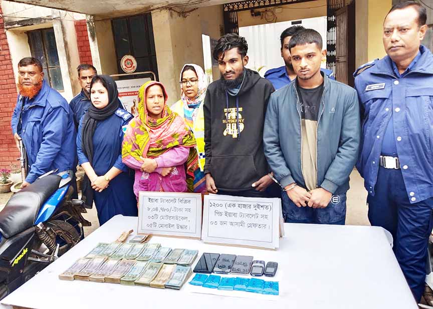 পুলিশ জানায়, রাতভর মাদক বিরোধী অভিযান চালিয়ে ভোররাতে কুখ্যাত মাদক কারবারি দেলোয়ারের বাড়ি থেকে এক হাজার দুইশত পিস ইয়াবা ট্যাবলেট, ৮ লাখ ৪ হাজার সাতশত আশি টাকা, ৩টি মোটরসাইকেল, ৫টি মোবাইলসহ ৩ জন মাদক কারবারিকে আটক করা হয়।