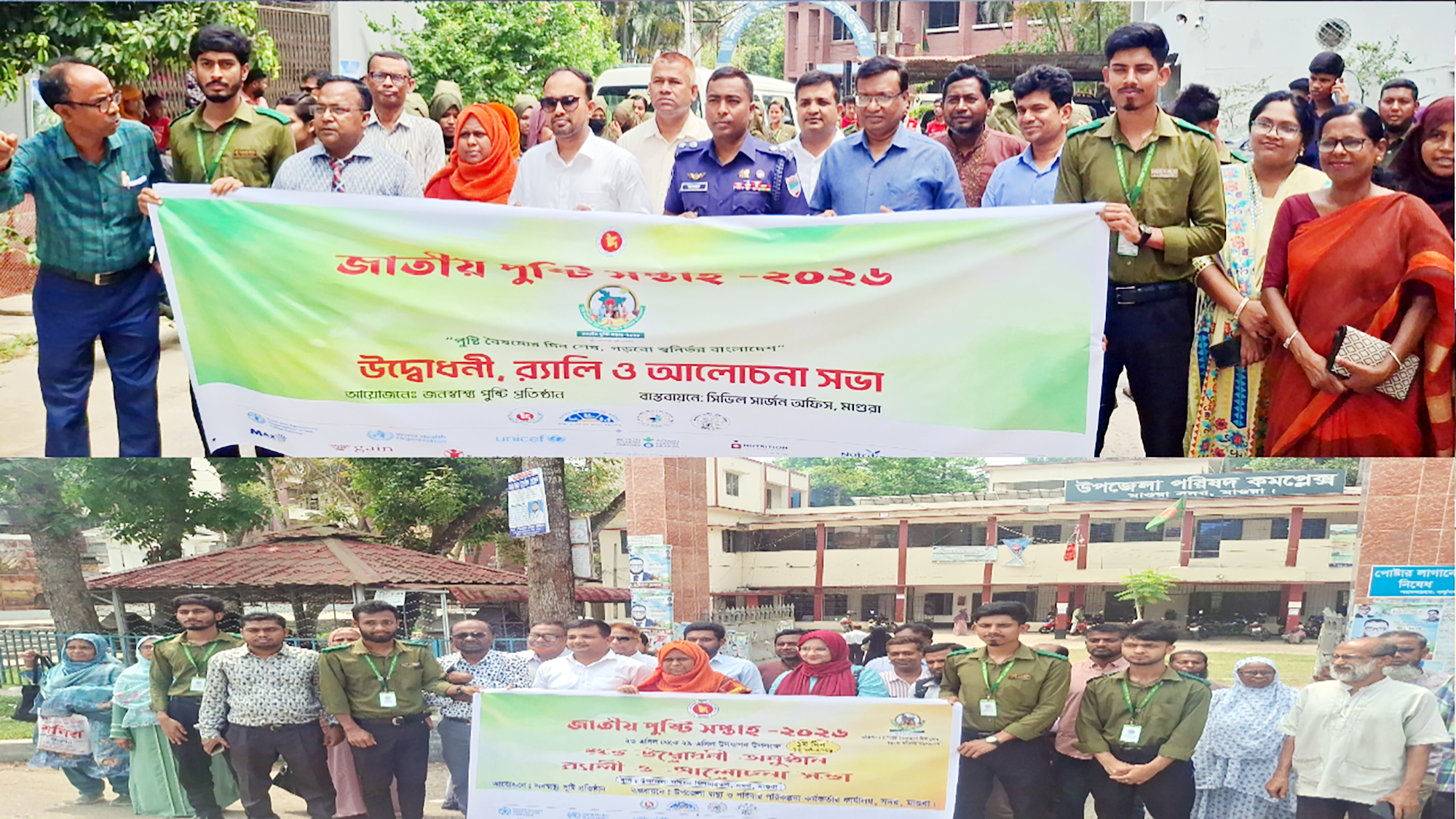 “পুষ্টি বৈষম্যের দিন শেষ, গড়বো স্বনির্ভর বাংলাদেশ” এই প্রতিপাদ্যকে সামনে রেখে মাগুরায় শুরু হয়েছে ৭ দিনব্যাপি জাতীয় পুষ্টি সপ্তাহ-২০২৬।