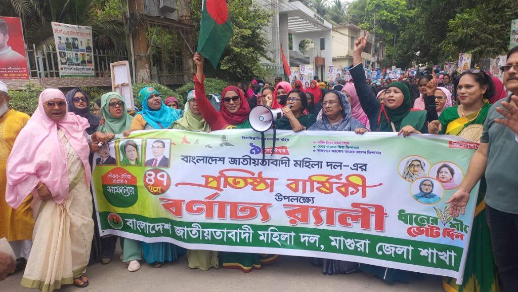 বাংলাদেশ জাতীয়তাবাদী মহিলাদলের ৪৭তম প্রতিষ্ঠাবার্ষিকীতে মাগুরা জেলা মহিলা দলের আয়োজনে বর্নাঢ্য র‌্যালি বের করা হয়।