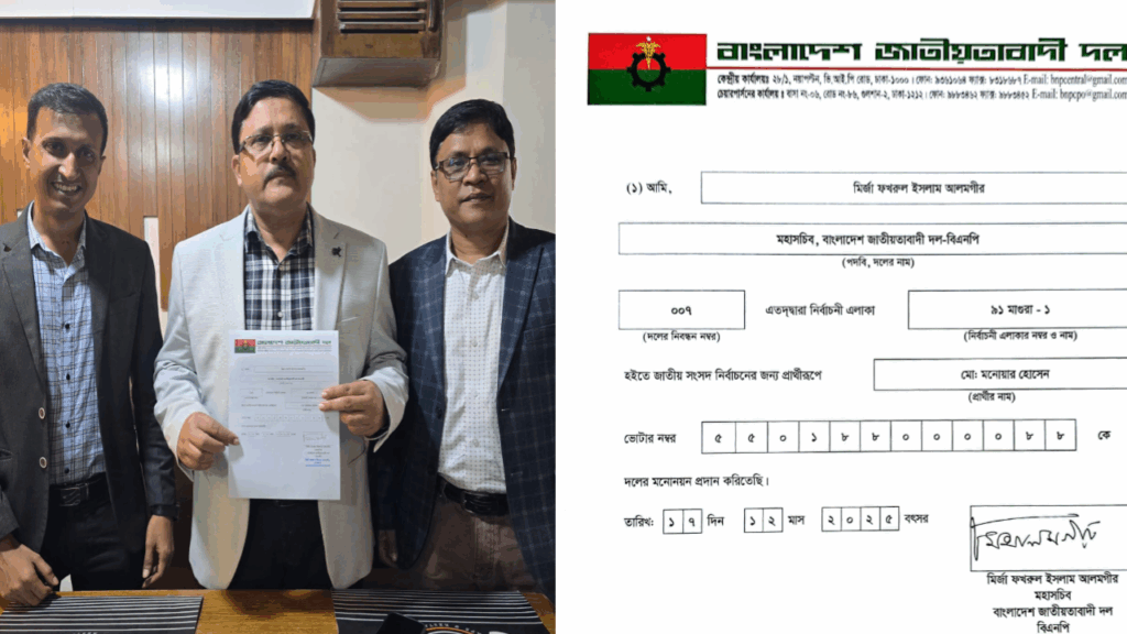 মাগুরা-১ আসনে বাংলাদেশ জাতীয়তাবাদী দলের চূড়ান্ত মনোনয়ন পেয়েছেন মাগুরা জেলা বিএনপির সদস্য সচিব মনোয়ার হোসেন খান। বুধবার দুপুরে বিএনপির মহাসচিব মির্জা ফখরুল ইসলাম আলমগীর স্বাক্ষরিত মনোনয়নপত্র তার হাতে তুলে দেয়া হয়।