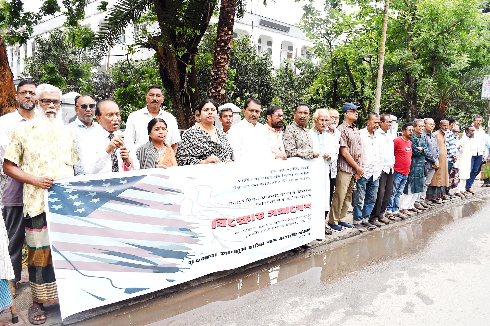 মার্কিন সাম্রাজ্যবাদ ও জায়ানবাদী ইসরায়েলের ইরানে হামলার প্রতিবাদে যশোরে বিক্ষোভ ও কর্মসূচি পালন করেছে। বৃহস্পতিবার দুপুর ১২টায় প্রেসক্লাবের সামনে মওলানা ভাসানী পরিষদের উদ্যোগে এ কর্মসূচি পালন করা হয়।