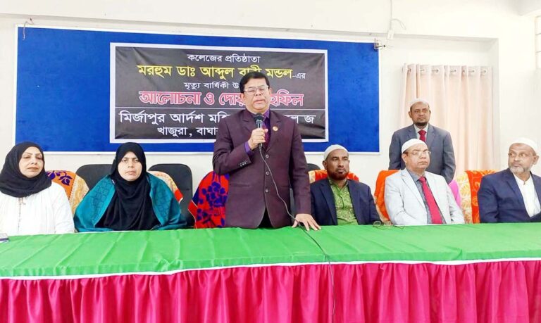 যশোরের খাজুরার মির্জাপুর আদর্শ মহিলা ডিগ্রি কলেজ ও সেকেন্দারপুর মাধ্যমিক বিদ্যালয়ের প্রতিষ্ঠাতা এবং বন্দবিলা ইউনিয়নের তিনবারের সাবেক চেয়ারম্যান ডা. আব্দুল বারী মন্ডলের ২৭তম মৃত্যুবার্ষিকী পালিত হয়েছে। এ উপলক্ষে রোববার দুপুরে আলোচনা সভা ও দোয়া মাহফিলের আয়োজন করা হয়।