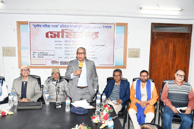 মুসলিম সাহিত্য সমাজ প্রতিষ্ঠার শতবর্ষ পূর্তি উপলক্ষে যশোরে আলোচনা ও সেমিনার অনুষ্ঠিত হয়েছে। প্রকৃতি ও মানুষ বিষয়ক জ্ঞানচর্চা কেন্দ্র, যশোরের উদ্যোগে সোমবার বিকেলে যশোর ইনস্টিটিউটে এ সেমিনারের আয়োজন করা হয়। সাহিত্য, সংস্কৃতি ও মননচর্চায় আগ্রহী ব্যক্তিবর্গের অংশগ্রহণে সেমিনারটি প্রাণবন্ত হয়ে ওঠে।