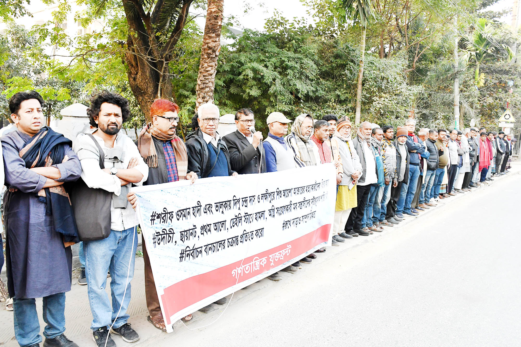 নির্বাচন বানচালের চক্রান্ত প্রতিহত করা, শিশু সাদিয়া হত্যার বিচার এবং ভালুকায় দিপু দাস হত্যাসহ বিভিন্ন অমানবিক ও সন্ত্রাসী কর্মকাণ্ডের প্রতিবাদে যশোরে বিক্ষোভ মিছিল ও সমাবেশ করেছে গণতান্ত্রিক যুক্তফ্রন্ট। একই সাথে তারা প্রথম আলো, ডেইলি স্টার, উদীচী এবং ছায়ানটে হামলার ঘটনার তীব্র নিন্দা জানিয়েছেন। বুধবার বিকেলে প্রেসক্লাব যশোরের সামনে এই বিক্ষোভ করা হয়।