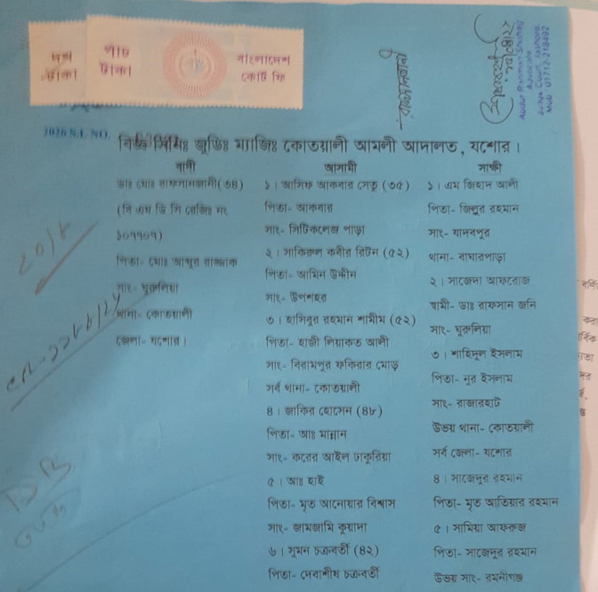 মামলার অভিযোগে জানা গেছে, ডাক্তার রাফসান জানীর কিশোরী শ্যালিকা তাকে ও তার বোনকে শায়েস্তা করতে সামাজিক যোগাযোগ মাধ্যমে বিভিন্ন ঘটনা উল্লেখ করে পোস্ট করেন। এ ঘটনাকে কেন্দ্র করে যশোরের কতিপয় সাংবাদিক পরিচয়দানকারী আসামিরা ডাক্তার রাফসান জানীকে মামলা দিয়ে জেল খাটানোর ভয় দেখিয়ে টাকা আদায়ের চেষ্টা করতে থাকেন।