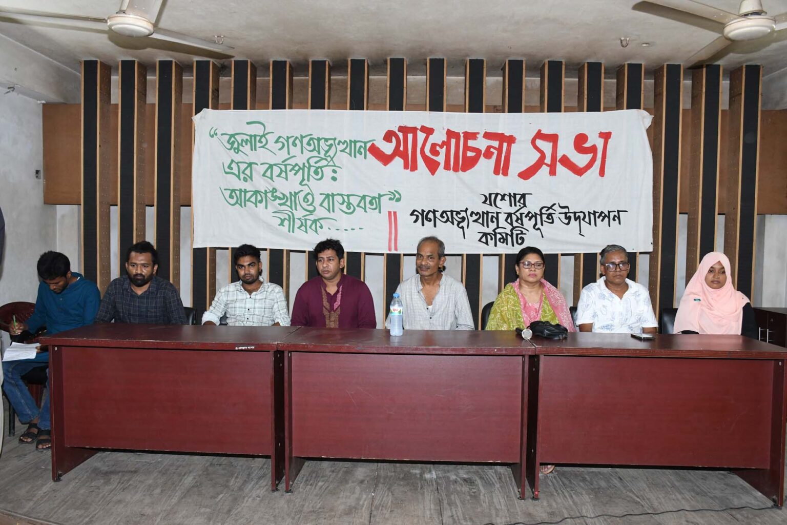 যশোরে ‘জুলাই গণঅভ্যুত্থান বর্ষপূর্তিতে আকাক্সক্ষা ও বাস্তবতা’ শীর্ষক আলোচনা সভা অনুষ্ঠিত হয়েছে। সোমবার বিকেলে প্রেসক্লাব যশোরে গণঅভ্যুত্থান বর্ষপূর্তি উদযাপন কমিটির আয়োজনে এই আলোচনা সভা করা হয়। সভায় বক্তারা জুলাই গণঅভ্যুত্থানের পর জনগণের আকাক্সক্ষা পূরণ না হওয়ায় হতাশা ব্যক্ত করেন। তারা আন্দোলনের অর্জনকে দুর্বল করার পেছনে বিভেদ সৃষ্টিকারী শক্তিকে দায়ী করেন।