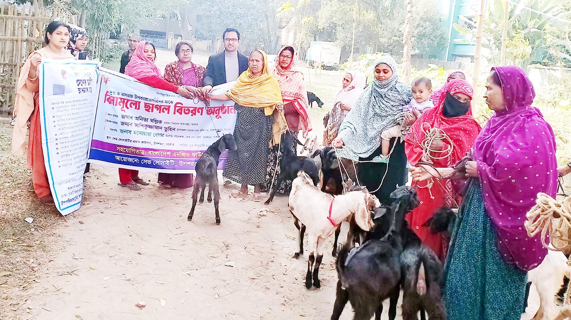 শেষে ১৯ জন উপকারভোগী মহিলার প্রত্যেকের হাতে ২টি করে মোট ৩৮টি ছাগল তুলে দেয়া হয়।