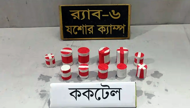 অভিযান চলাকালে ওই এলাকার একটি পরিত্যক্ত রেলওয়ে কোয়ার্টারের বারান্দার মেঝেতে কসটেপ দিয়ে মোড়ানো অবস্থায় সন্দেহজনক বস্তু দেখতে পায় র্যাব সদস্যরা। পরে তল্লাশি চালিয়ে সেখান থেকে ১১টি ককটেল উদ্ধার করা হয়।