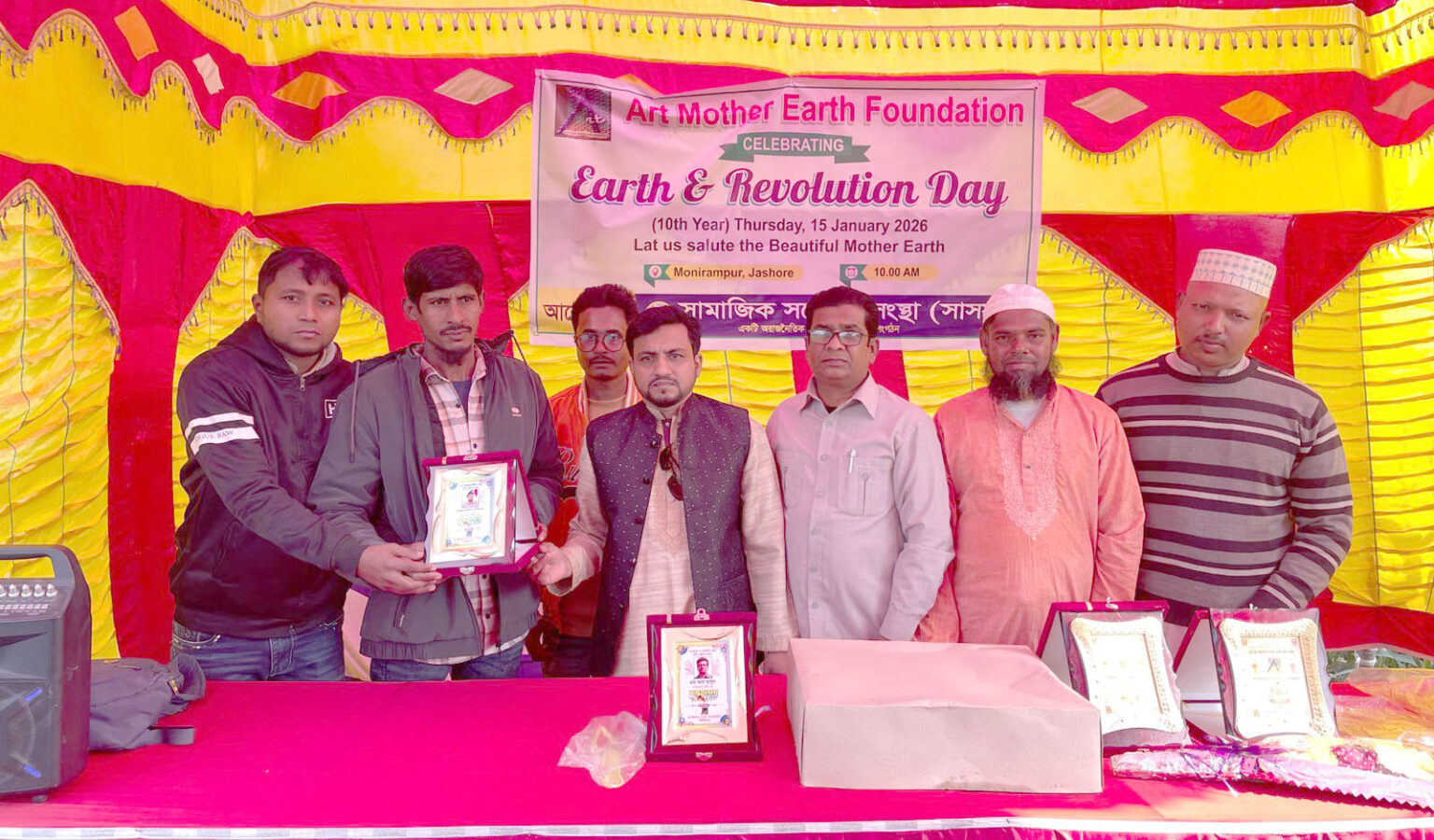 সামাজিক ও সংবাদমাধ্যমে বিশেষ ভূমিকা রাখায় আর্ট মাদার অ্যাণ্ড আর্থ ফাউণ্ডেশনের পক্ষ থেকে সাংবাদিক এম আর মাসুদকে সম্মাননা স্মারক প্রদান করা হয়। এছাড়া বিশ্ব শান্তি প্রতিষ্ঠার লক্ষ্যে বিশেষ ভূমিকা রাখায় বাংলাদেশ পুলিশের সদস্য উপ-পরিদর্শক মফিজুল ইসলাম পিপিএমকে সম্মাননা স্মারক প্রদান করা হয়।