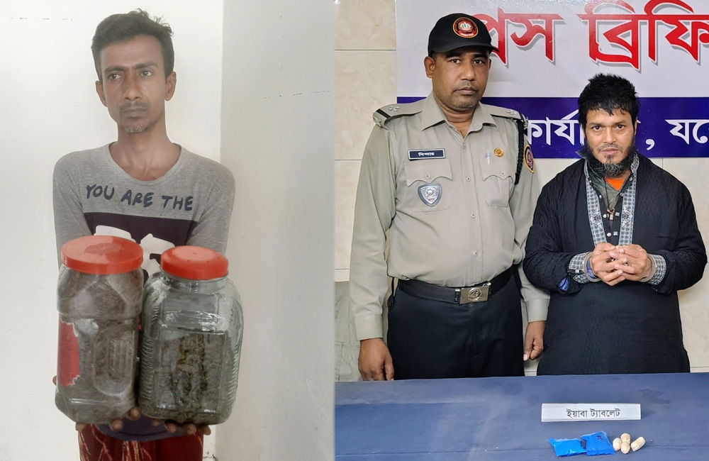 মাদকদ্রব্য অধিদপ্তর যশোরের উপপরিচালক পারভিন আখতার জানান, গোপন সংবাদের ভিত্তিতে যশোরে পৃথক দুটি স্থানে অভিযান চালিয়ে মাদকদ্রব্যসহ দুইজনকে আটক করা হয়েছে। তাদের বিরুদ্ধে মাদকদ্রব্য আইনে পৃথক দুটি নিয়মিত মামলা করা হয়েছে।
