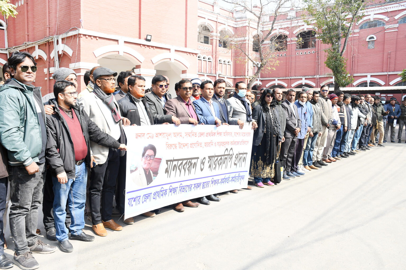 যশোর জেলা প্রাথমিক শিক্ষা অফিসার আশরাফুল আলমকে ঘুষের অভিযোগে দুদক আটকের ঘটনায় প্রাথমিক শিক্ষকরা মানববন্ধন করেছে। বৃহস্পতিবার দুপুরে জেলা প্রশাসকের কার্যালয় চত্বরে ঘণ্টাব্যাপী এই মানববন্ধনে শিক্ষা অফিসার আশরাফুল আলমের নিঃশর্ত মুক্তি দাবি করেন তারা।