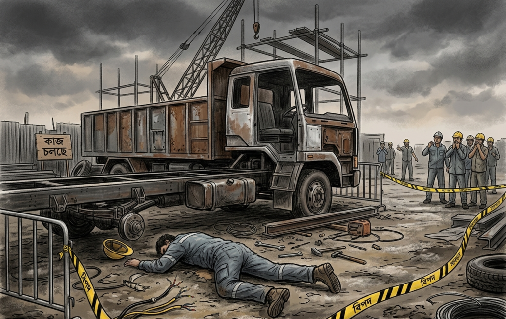 স্থানীয় সূত্র ও সহকর্মীদের বরাতে জানা যায়, শনিবার সকালে প্রতিদিনের মতো মুড়লি এলাকার একটি গ্যারেজে ট্রাকের বডি ওয়েল্ডিং করছিলেন মোস্তাফিজুর। কাজের একপর্যায়ে অসাবধানতাবশত বৈদ্যুতিক তারের সংস্পর্শে এসে তিনি মারাত্মকভাবে বিদ্যুৎস্পৃষ্ট হয়ে মাটিতে লুটিয়ে পড়েন।